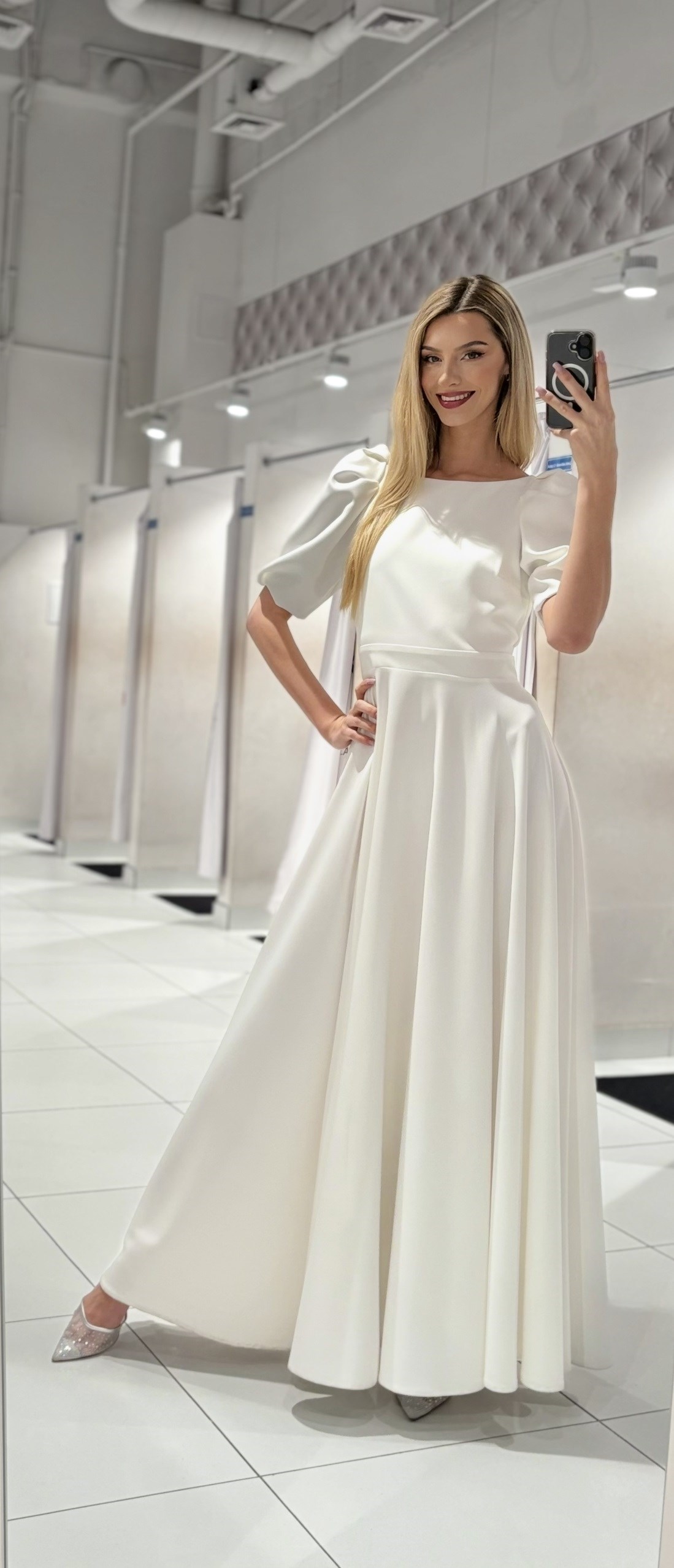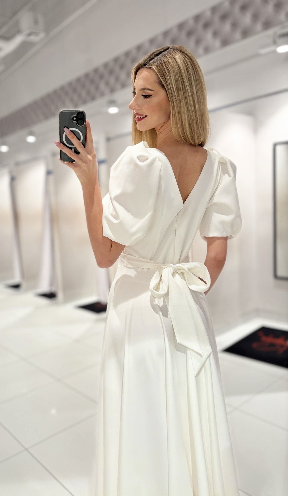 Sukienka długa 3/4 rękawek wiązanie plecy biel