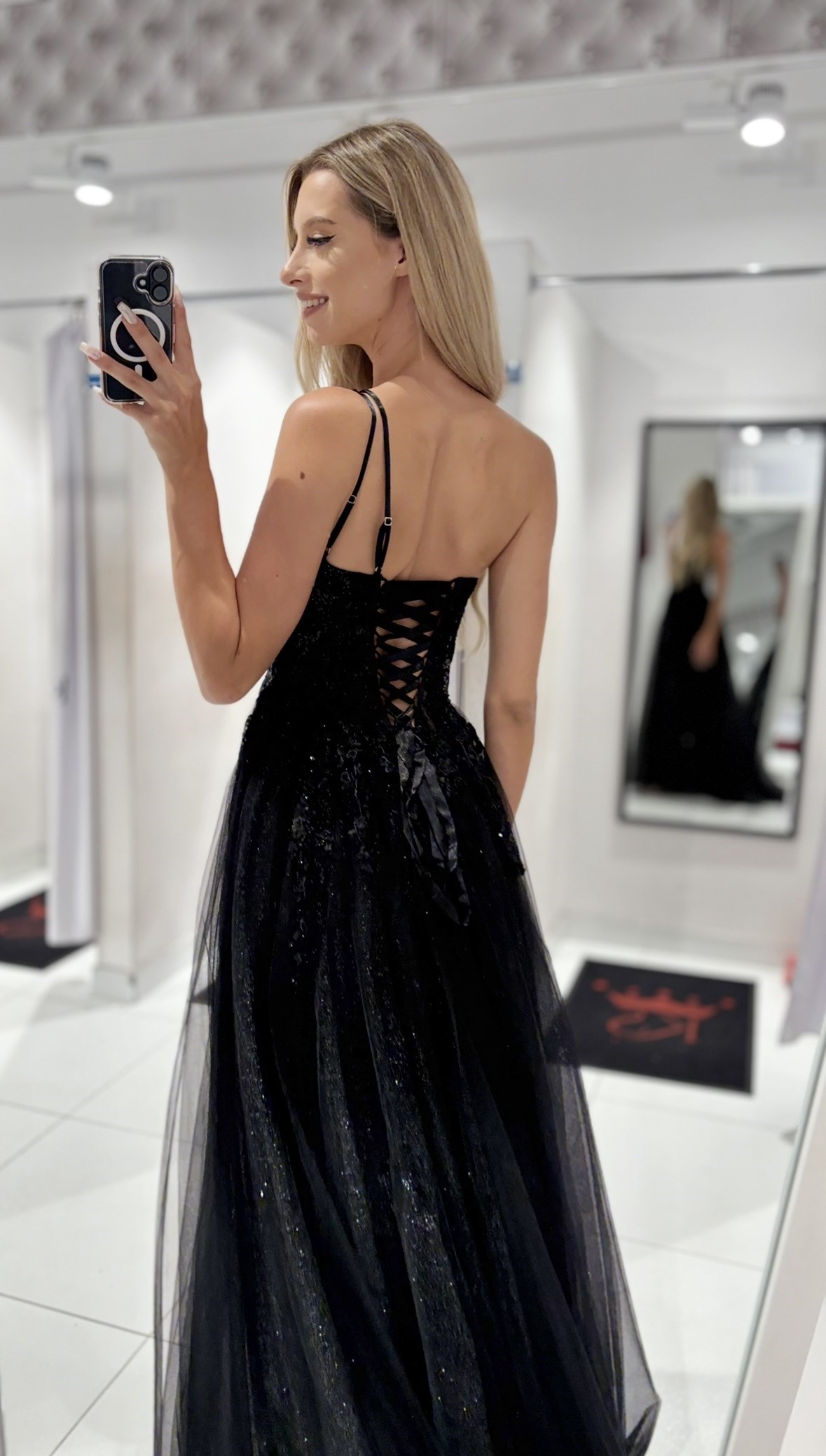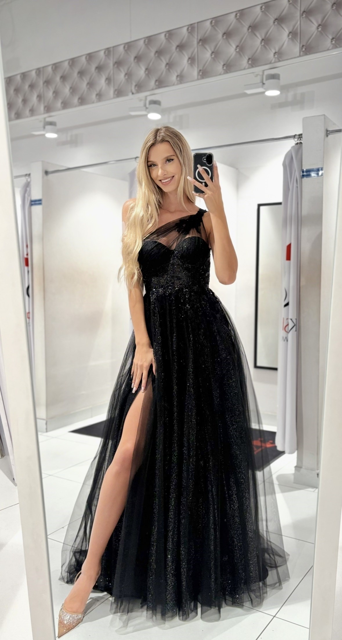Sukienka długa asymetria tiul brokat czerń