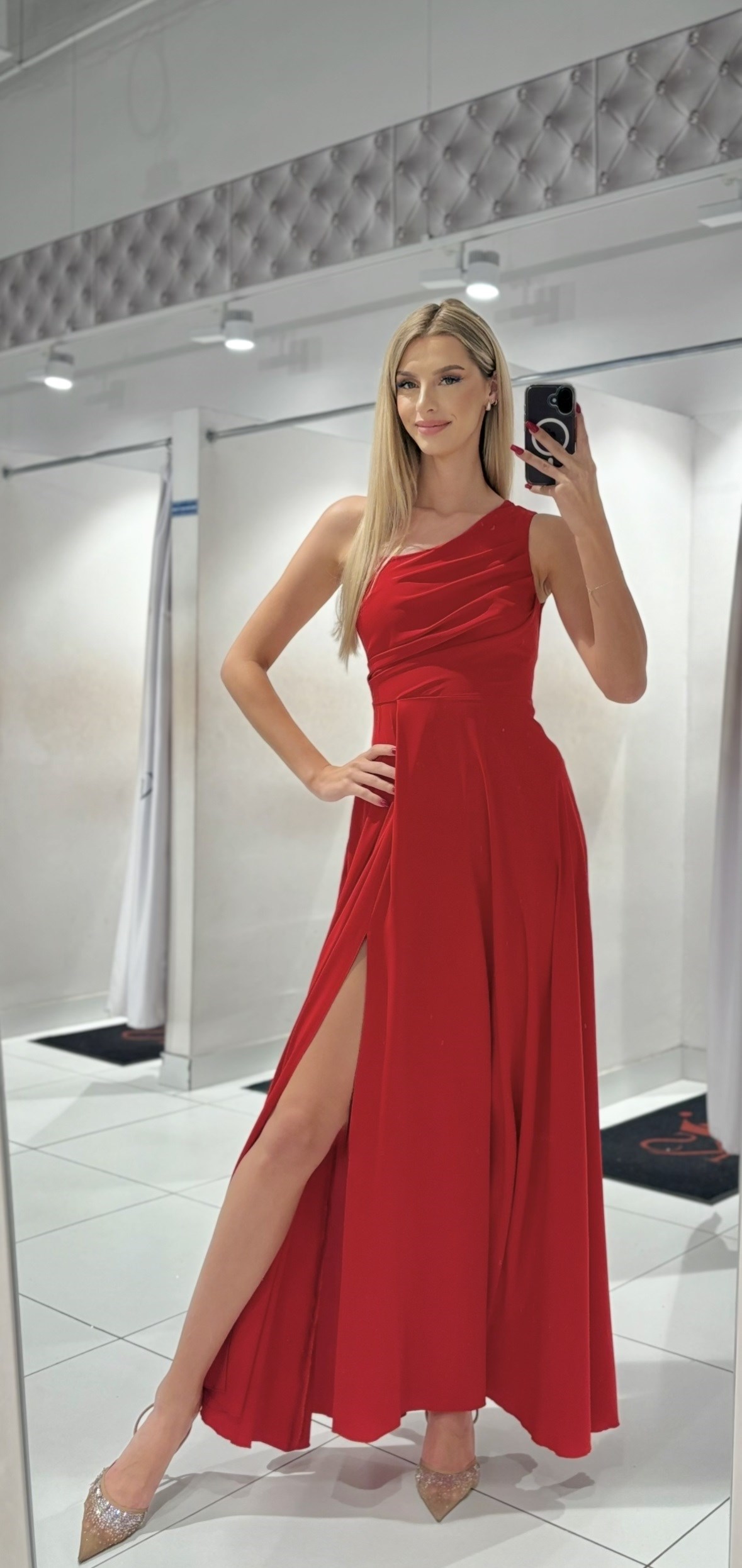 Sukienka długa asymetria wiązanie plecy czerwień