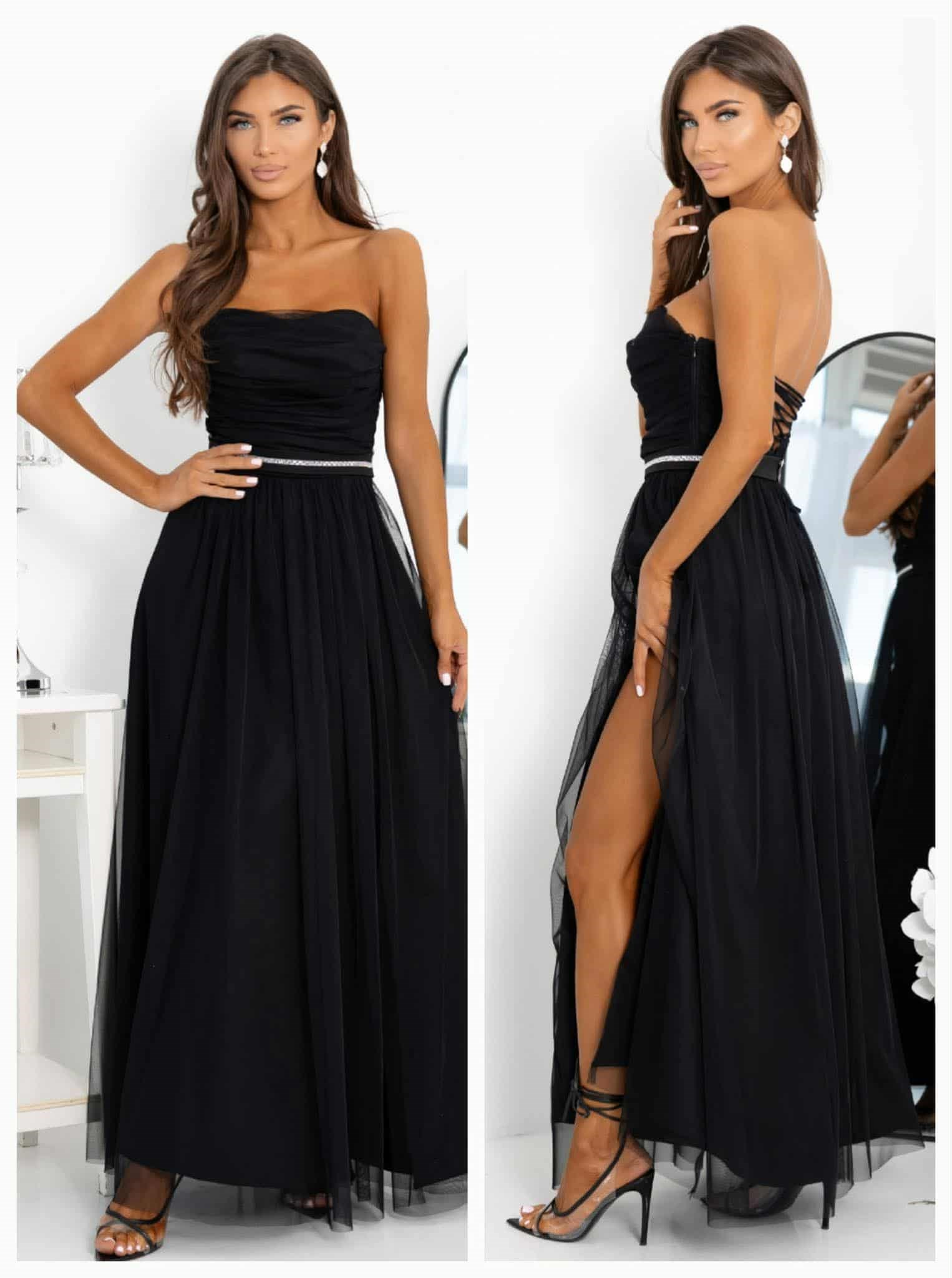 Sukienka długa cała tiulowa wiązanie tył czerń