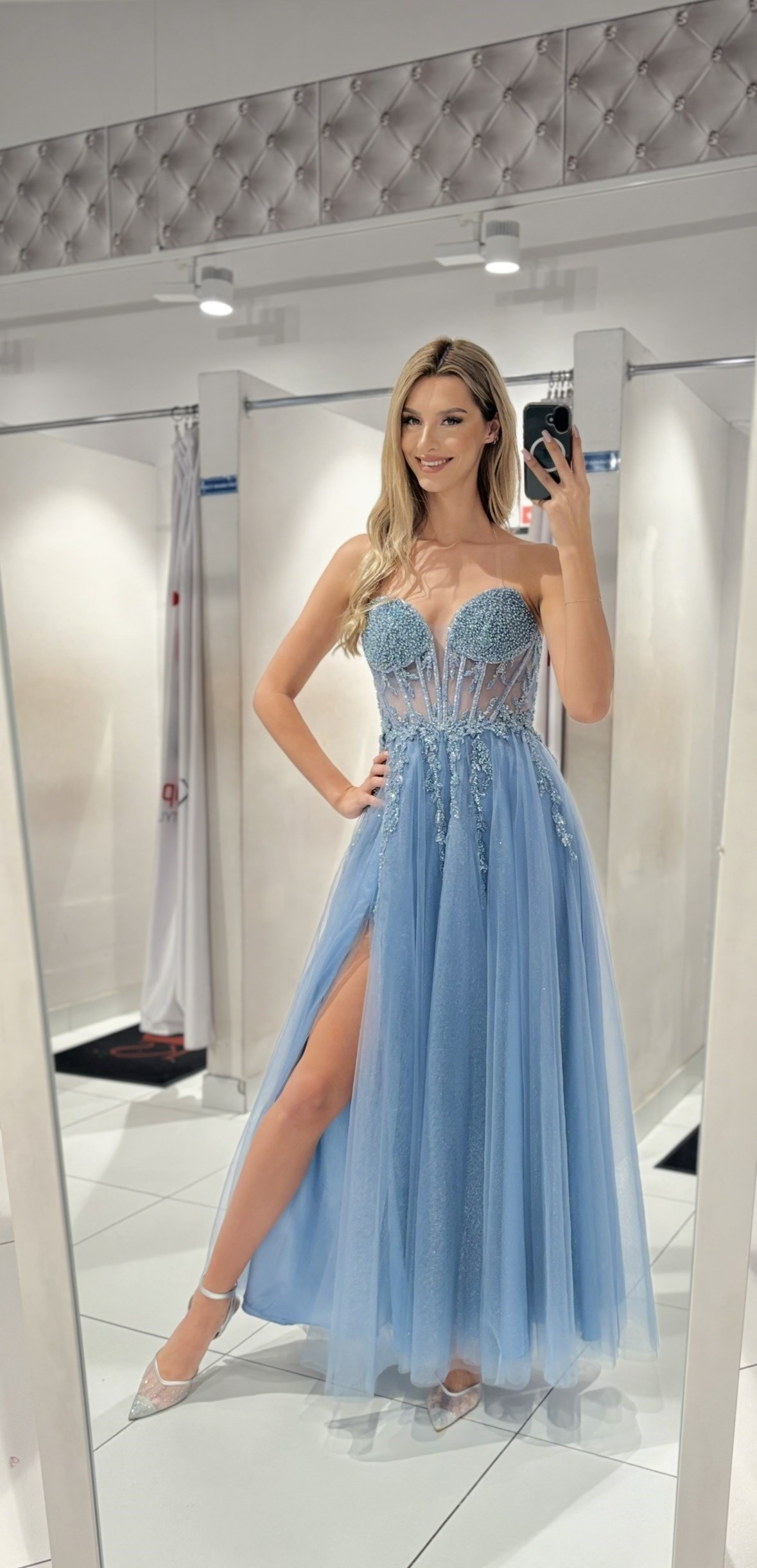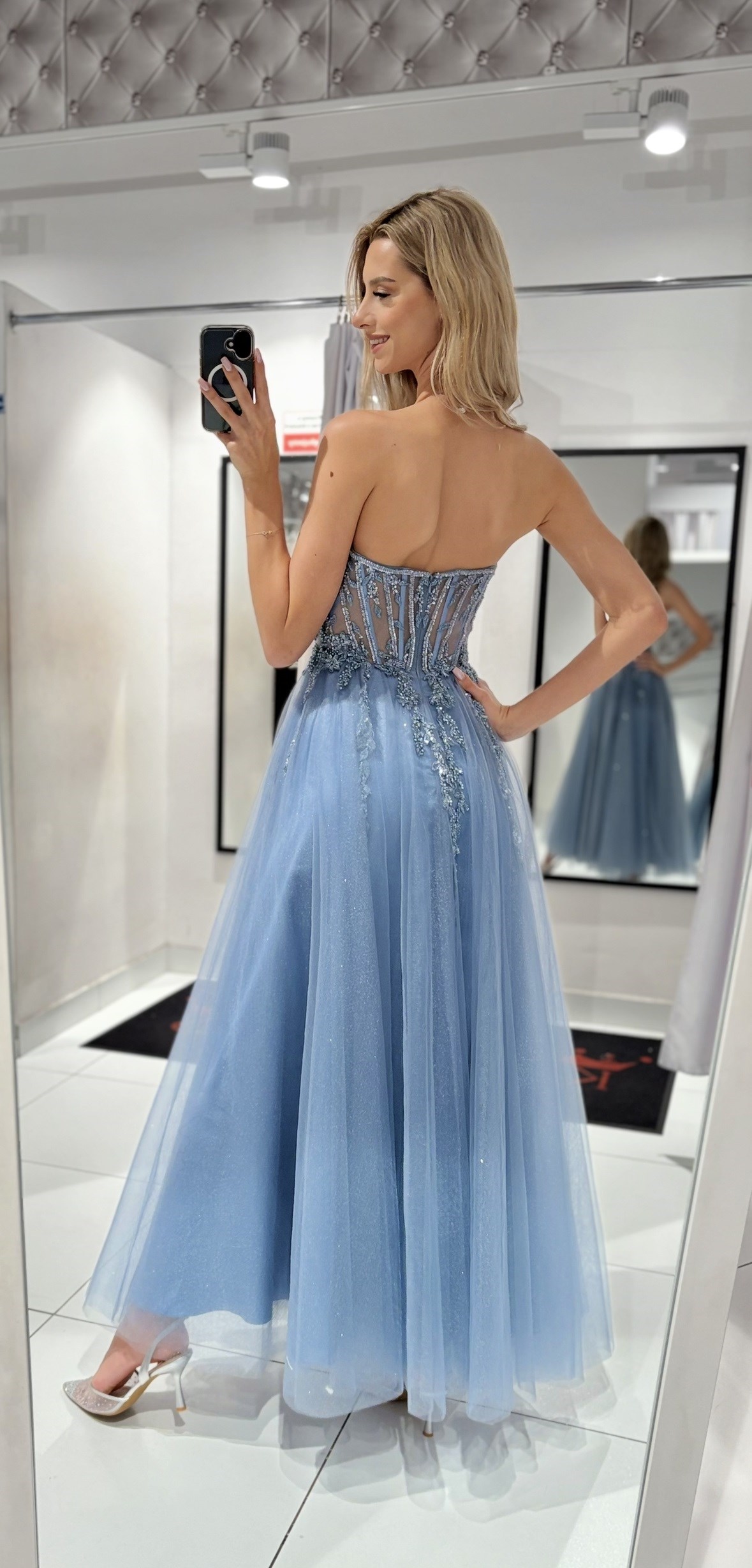 Sukienka długa gorset tiul brokat koraliki szałwia