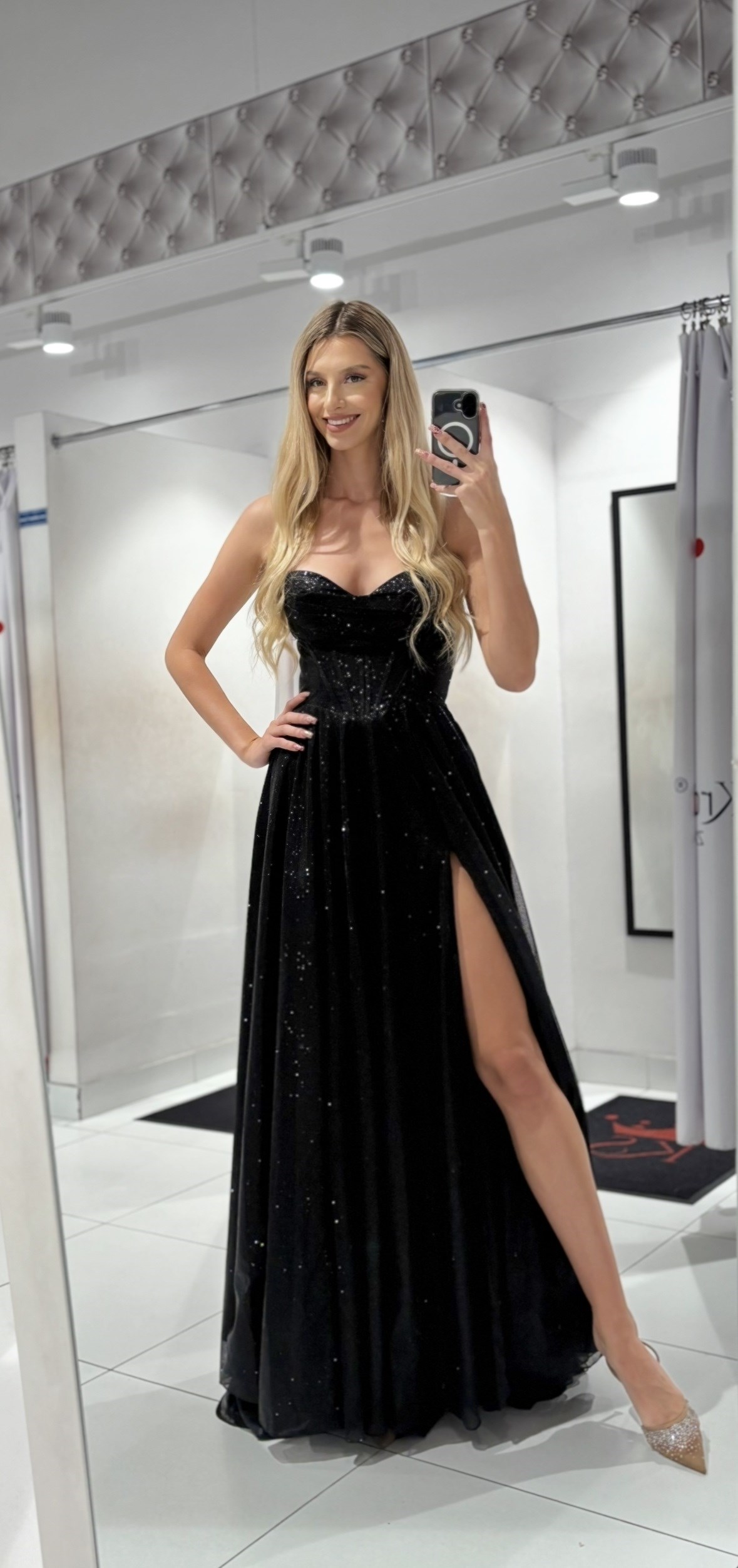 Sukienka długa gorset wiązanie plecy brokat czerń