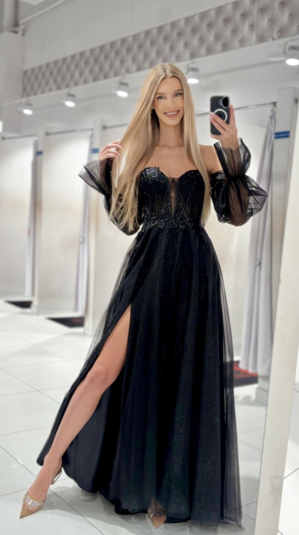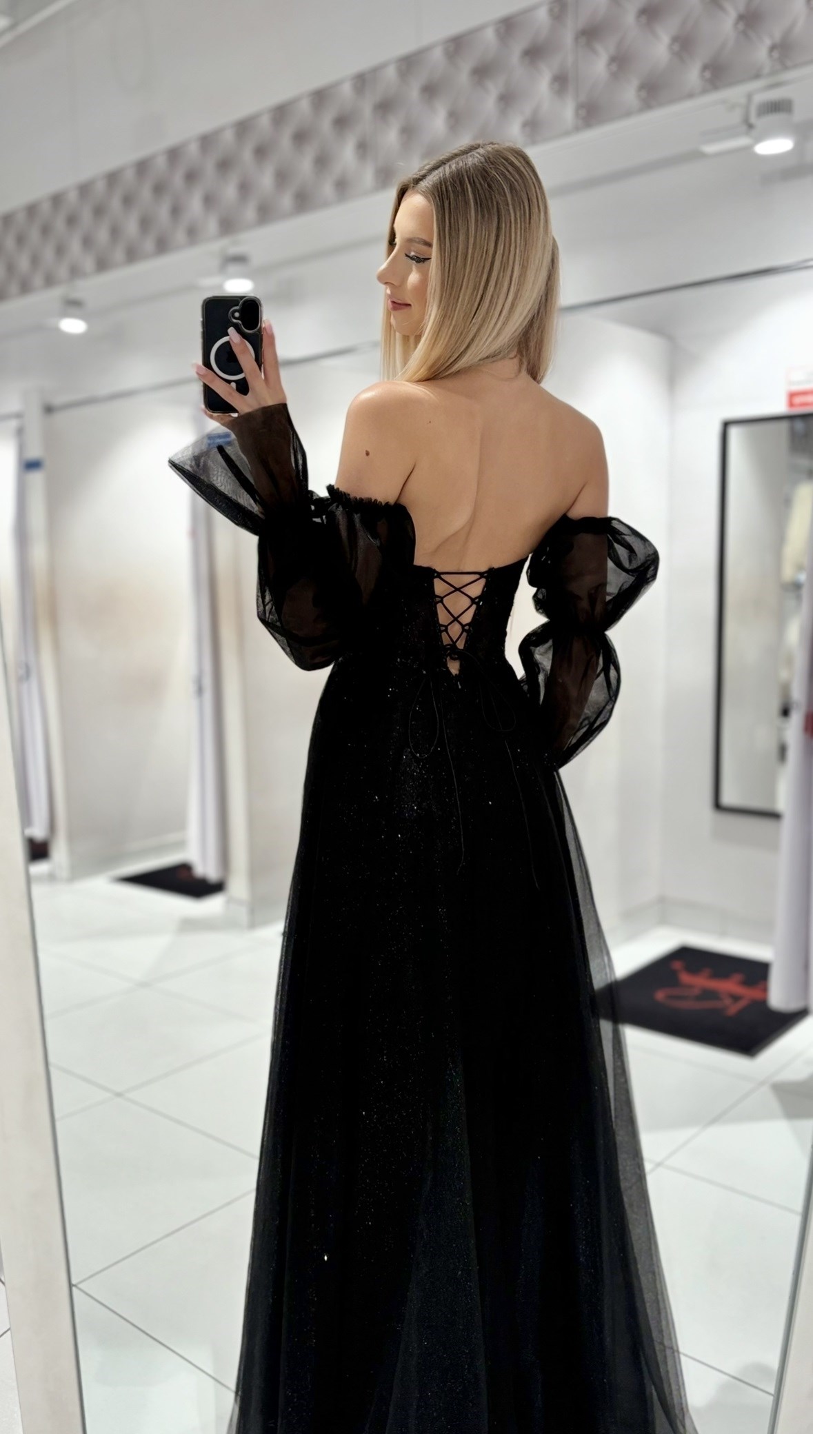 Sukienka długa gorset wiązanie rękawki czerń