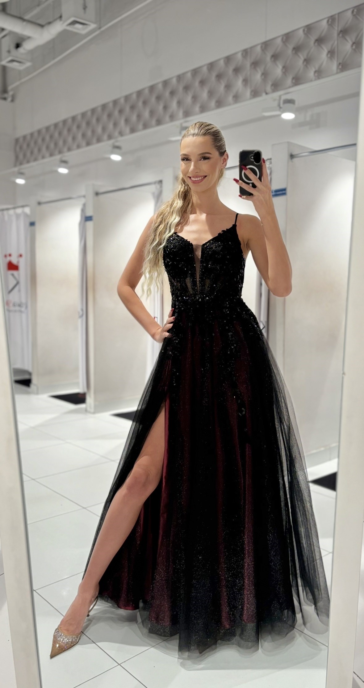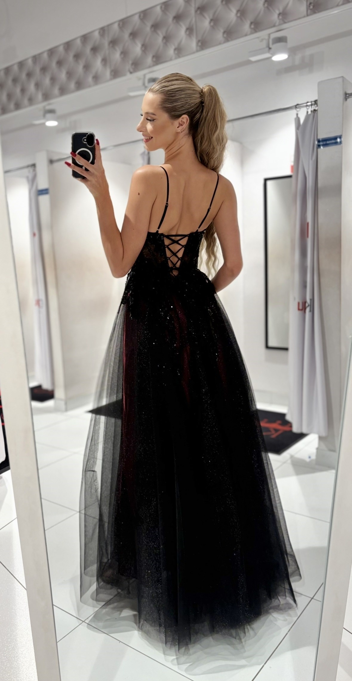 Sukienka długa gorset zdobienie brokat cz/bordo