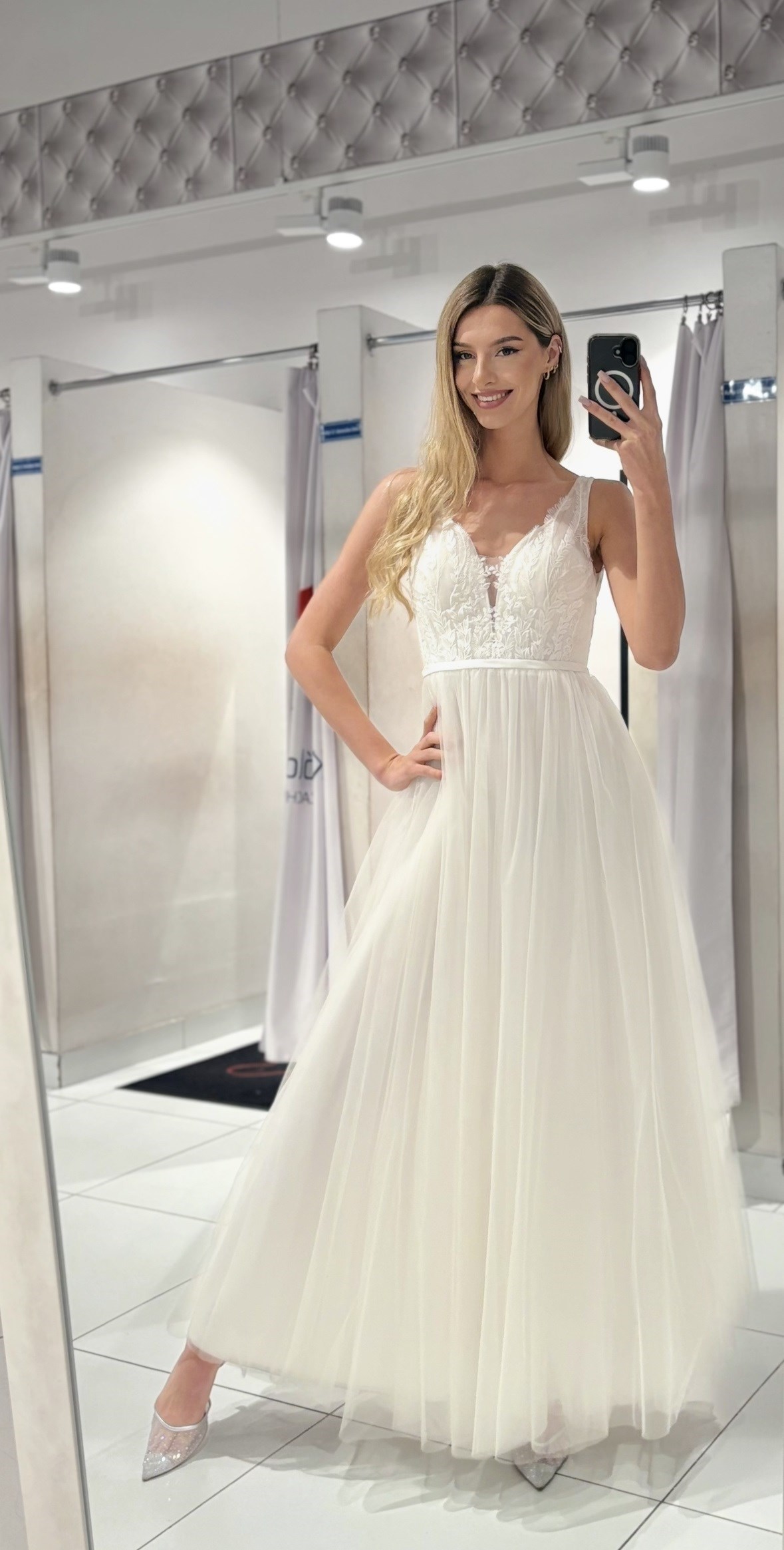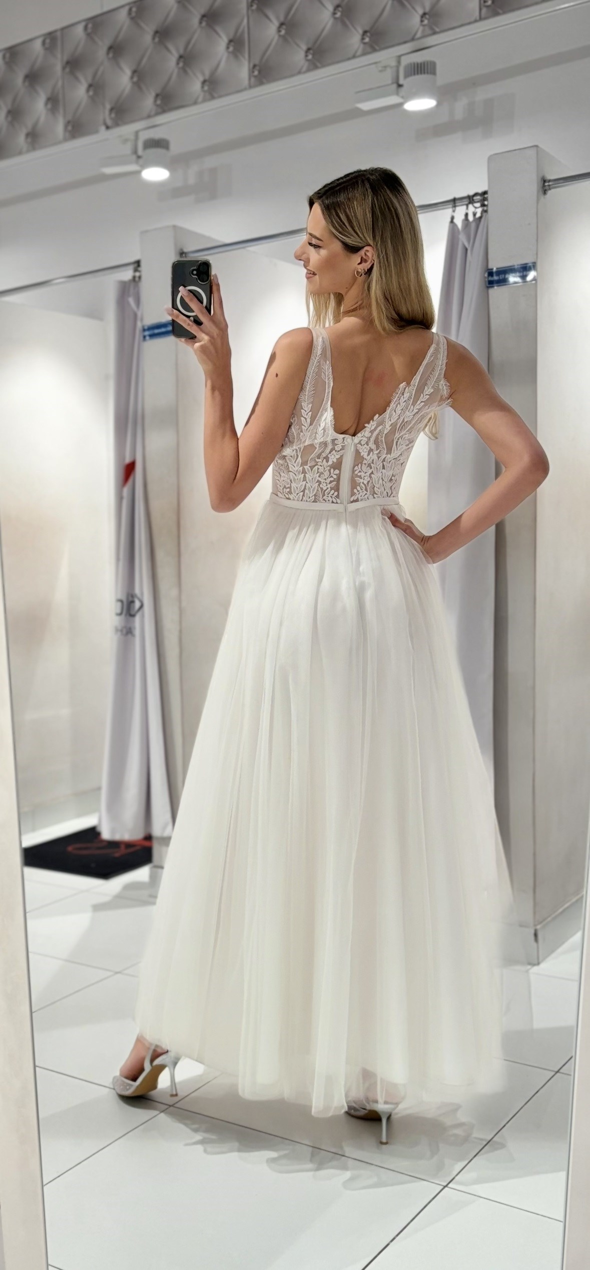 Sukienka długa haft na gorsecie tiul biel