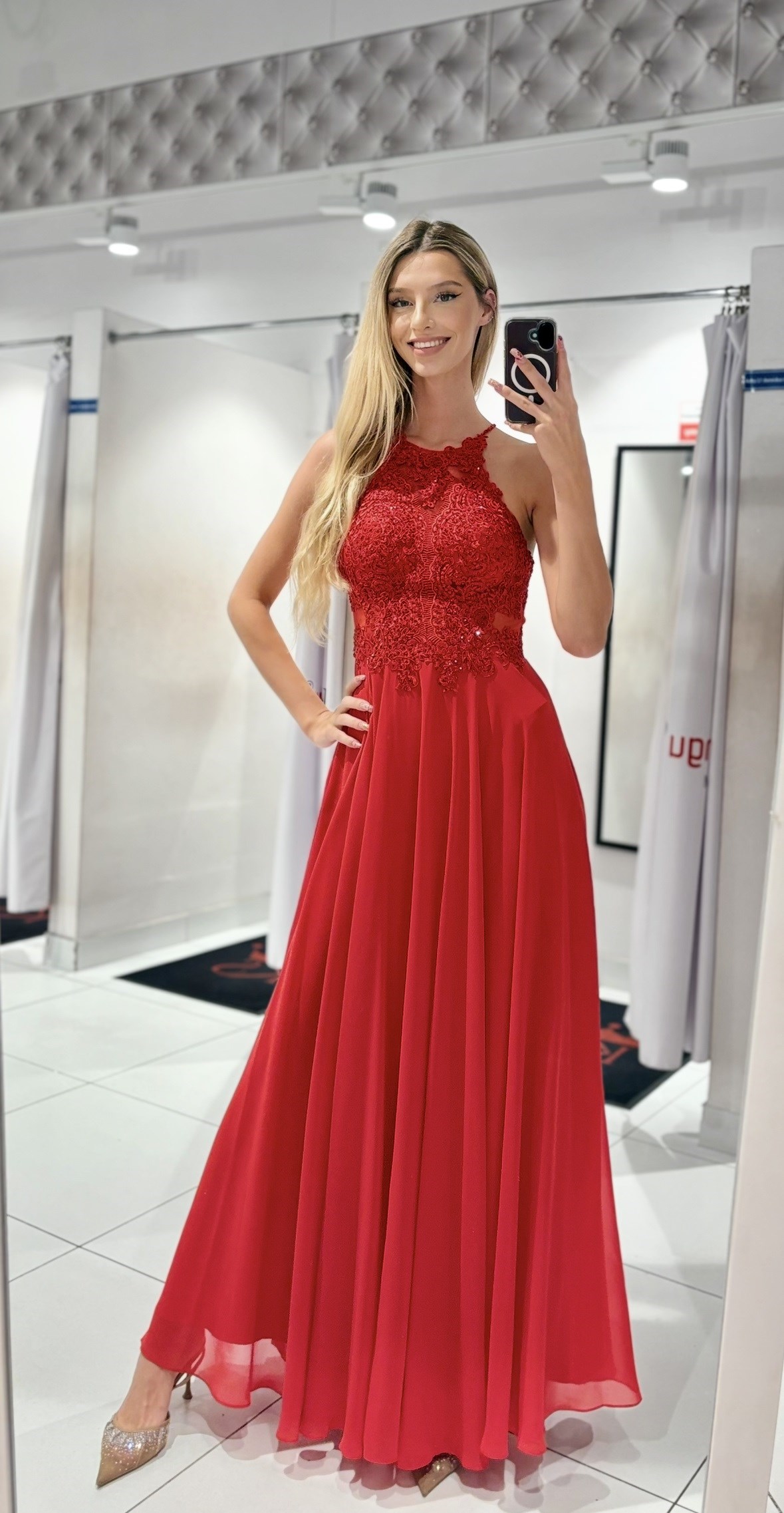 Sukienka długa ramiączka na krzyż czerwony