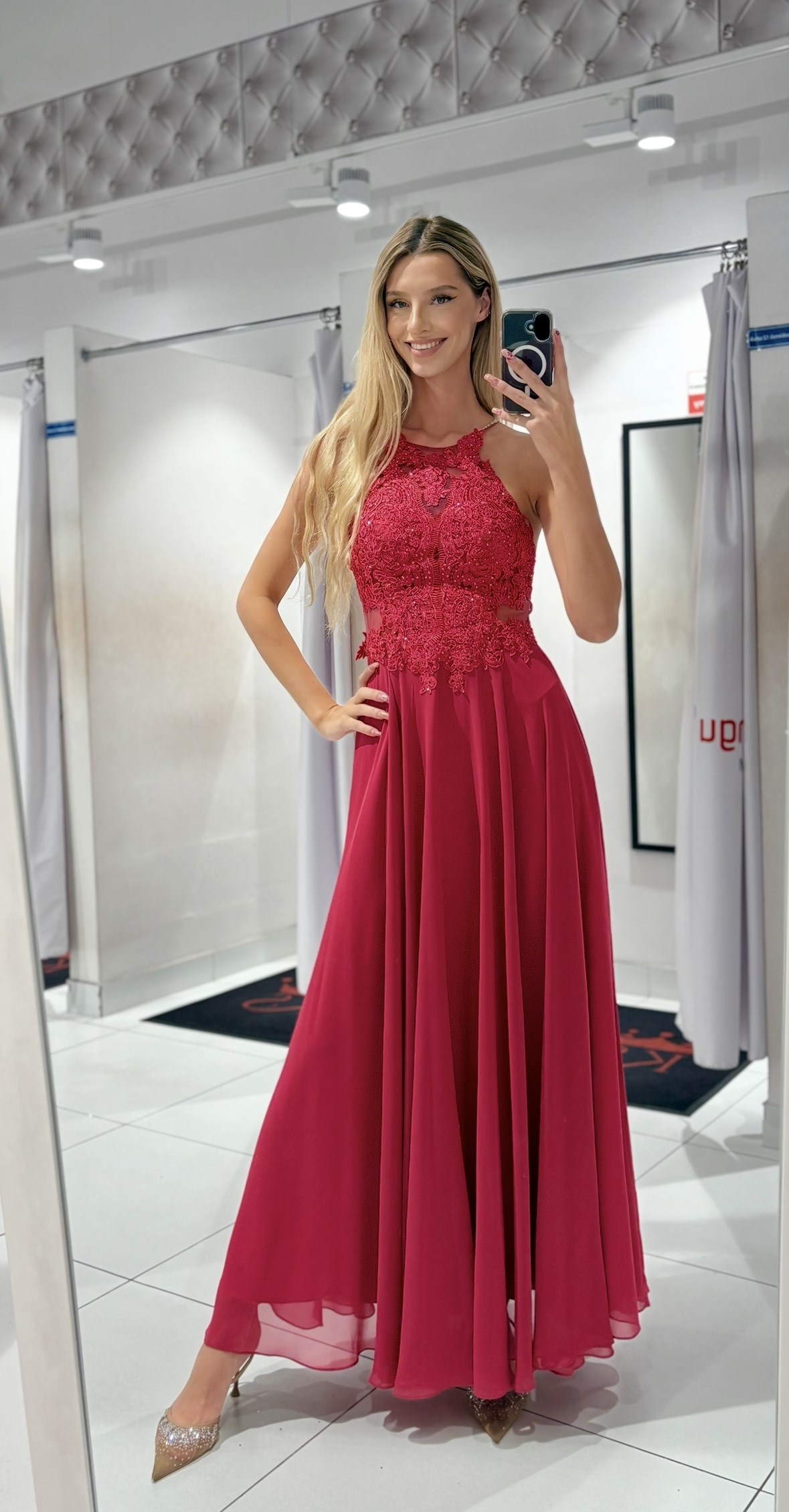 Sukienka długa ramiączka na krzyż czerwony