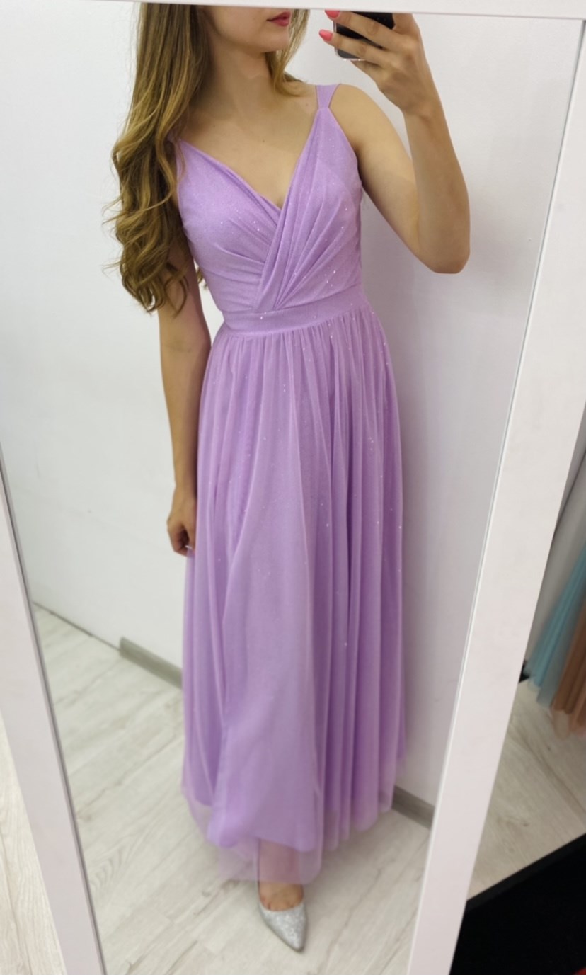 Sukienka długa ramiączka tiul pas brokat fiolet
