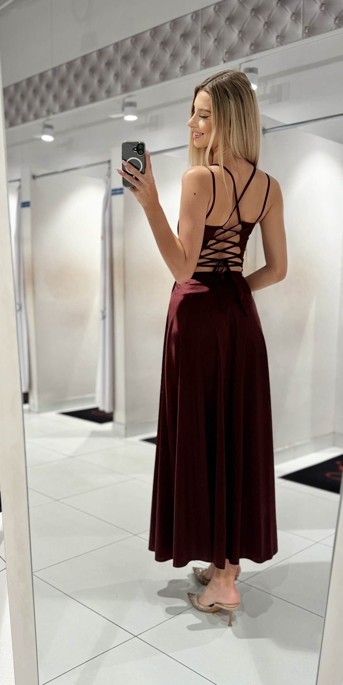 Sukienka długa satyna wiązanie plecy oliwkowy