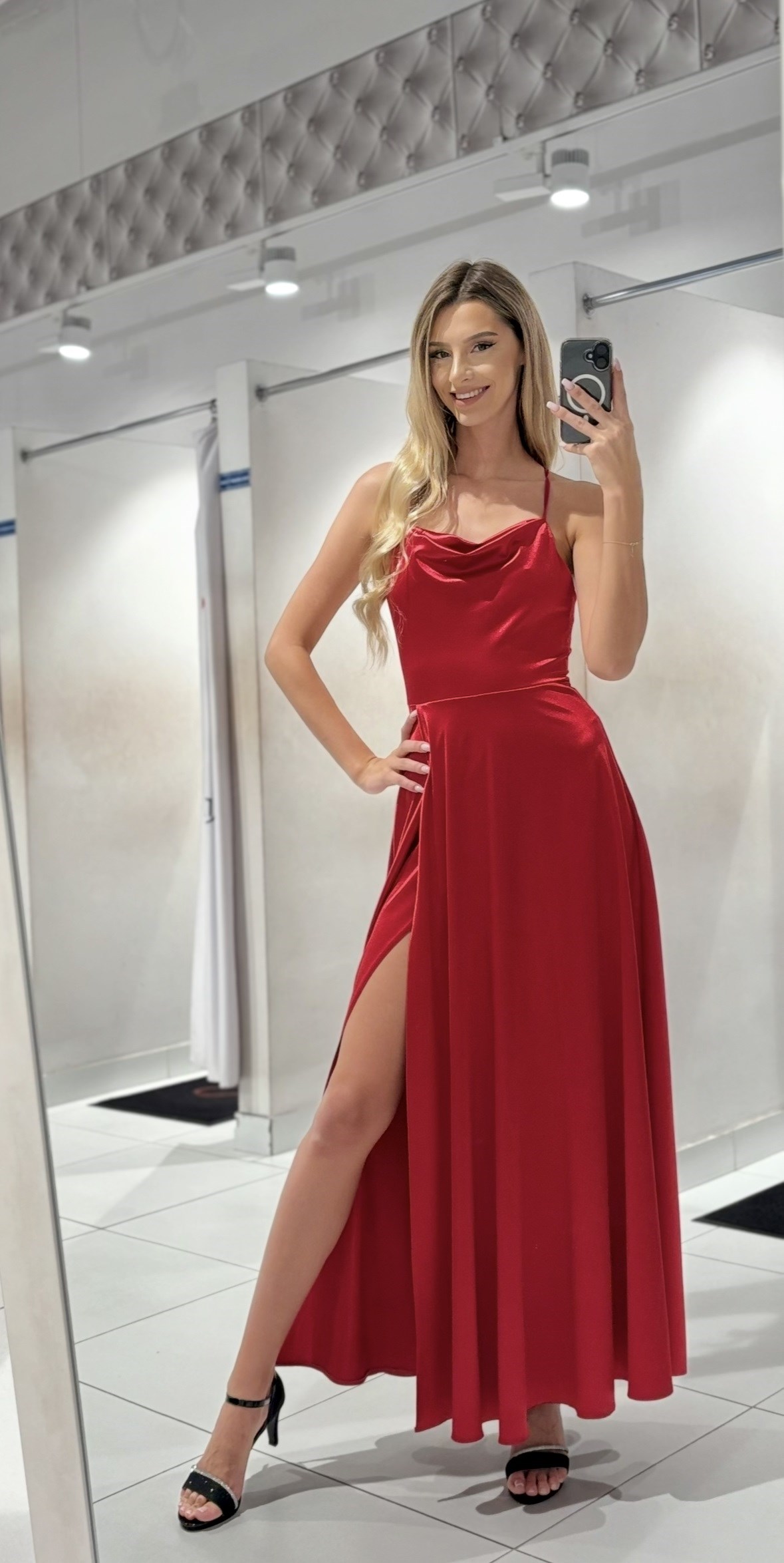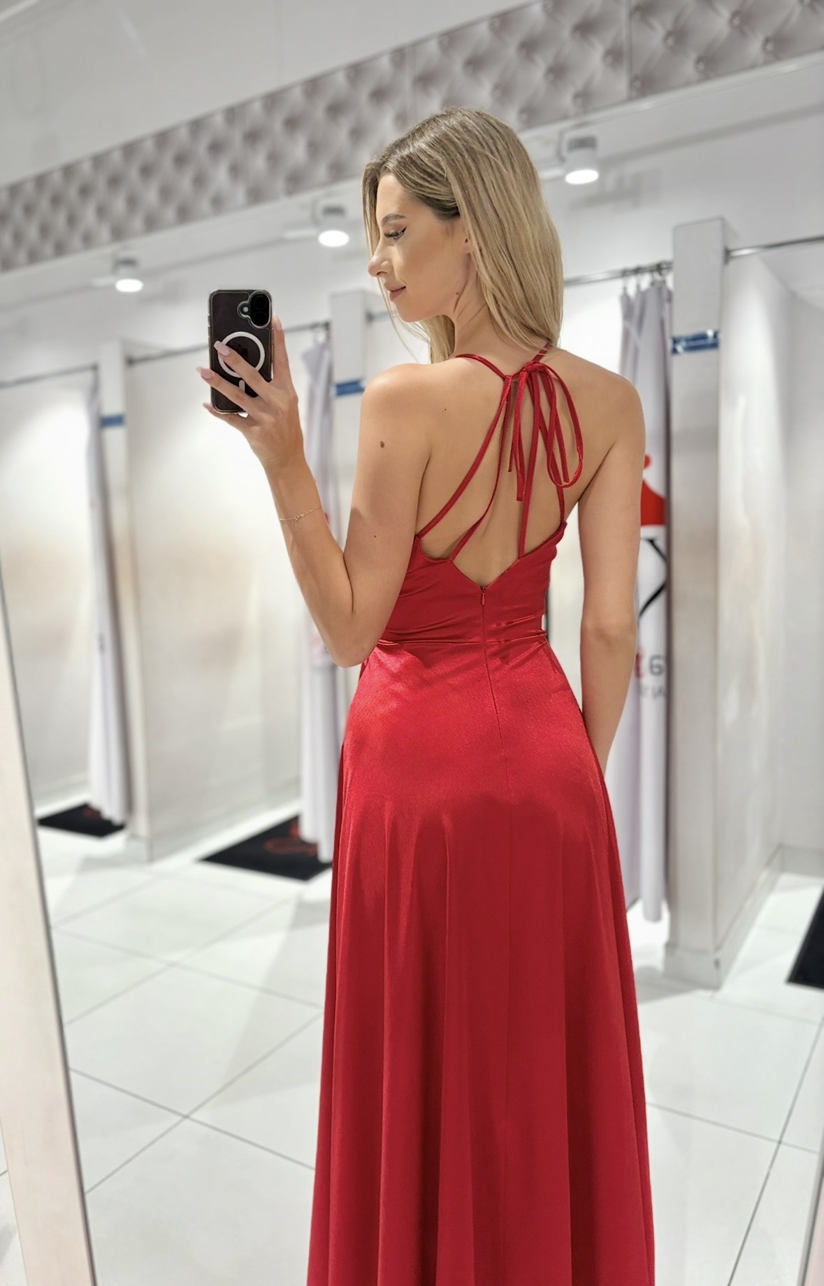 Sukienka długa satynowa wiązanie szyja butelkowa