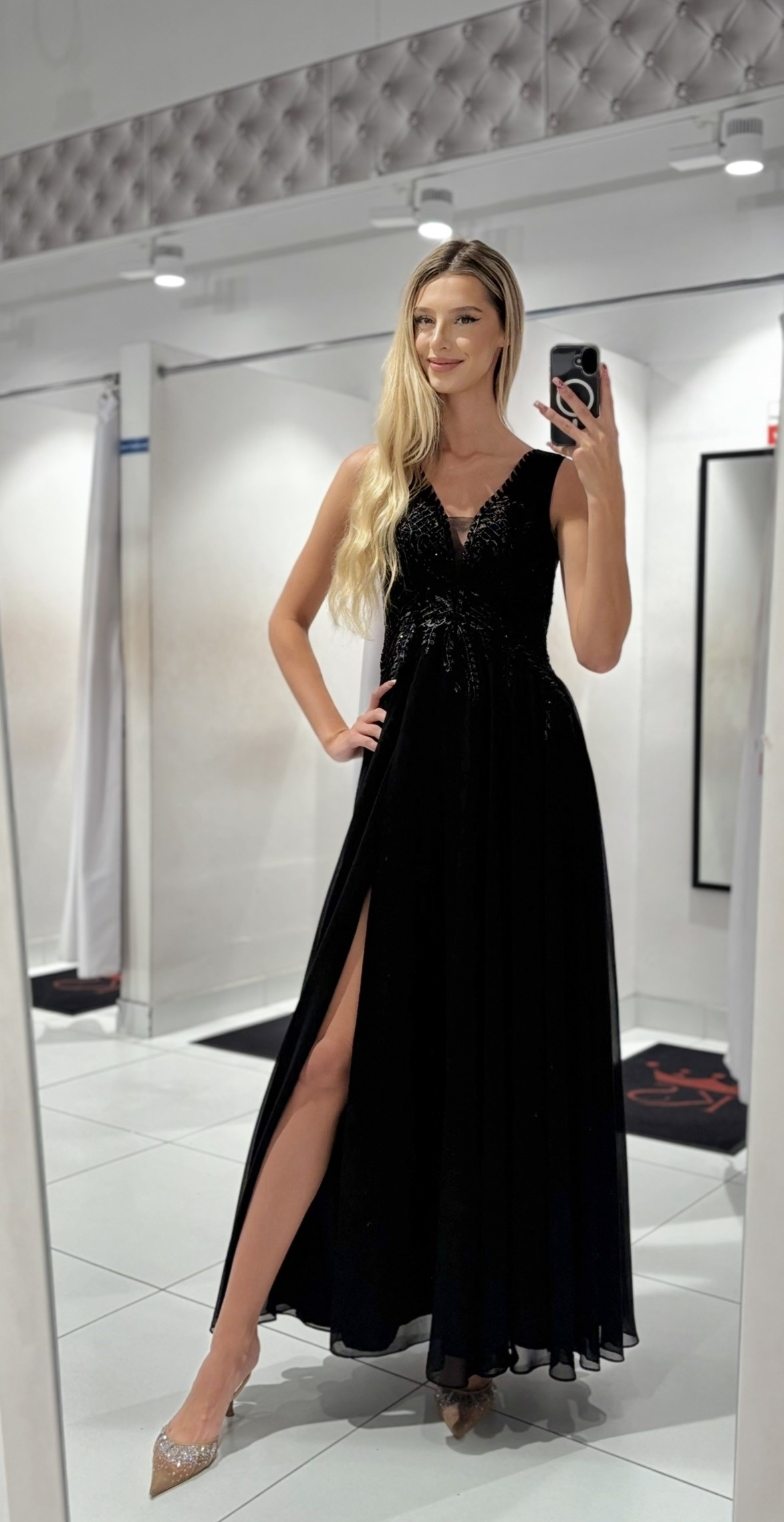 Sukienka długa zdobiona góra czerń