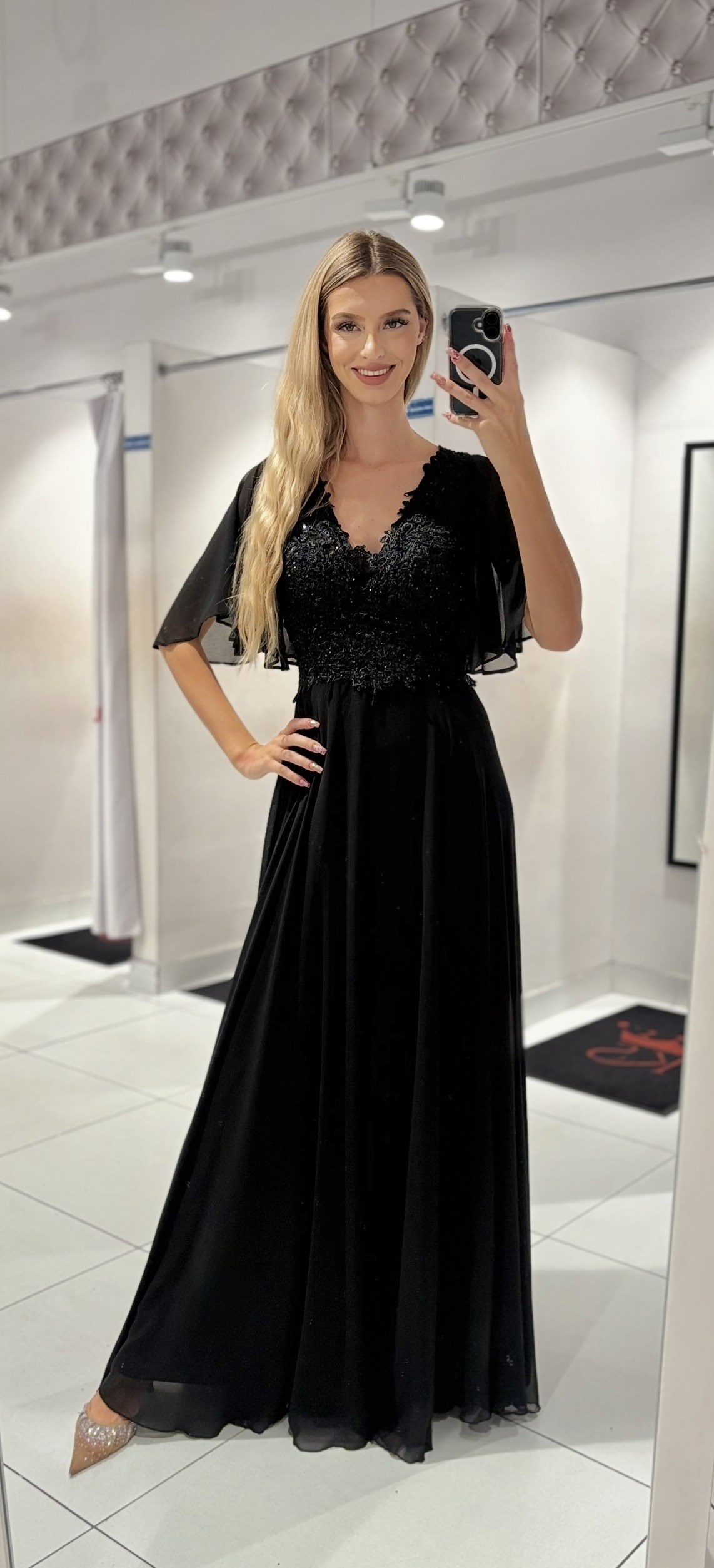 Sukienka długa zdobiona góra rękawek czerń