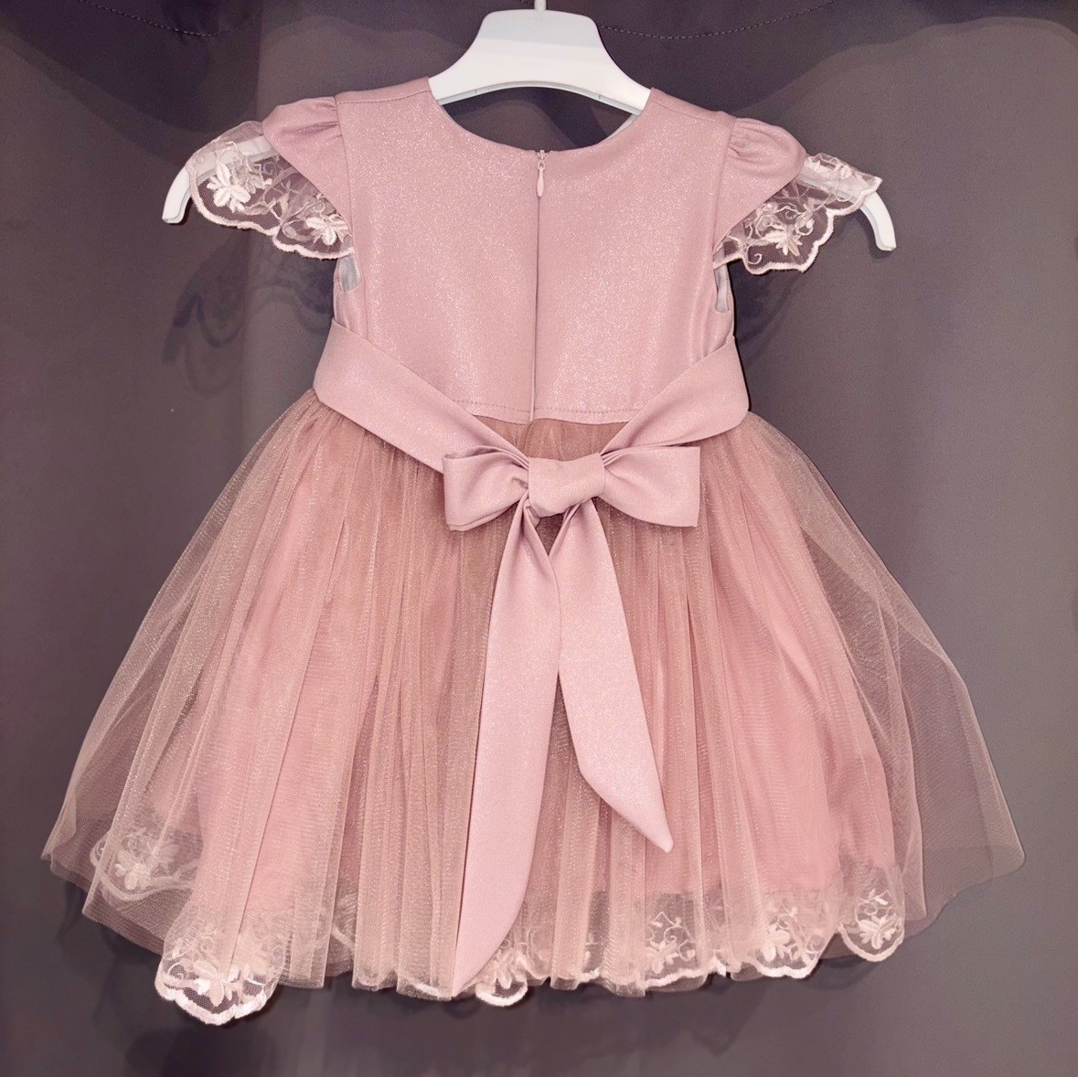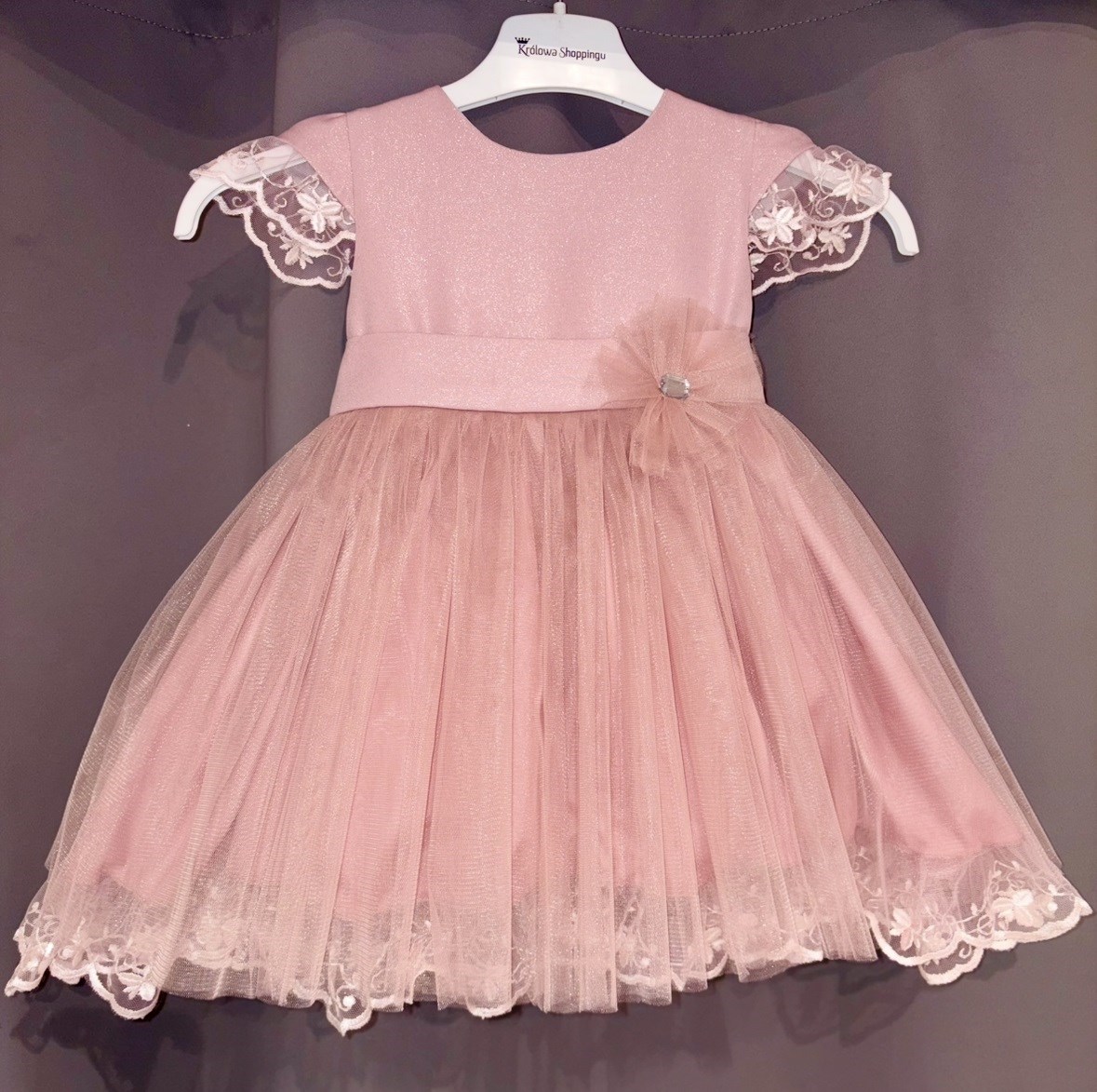 Sukienka dziecięca rękawek koronka róż