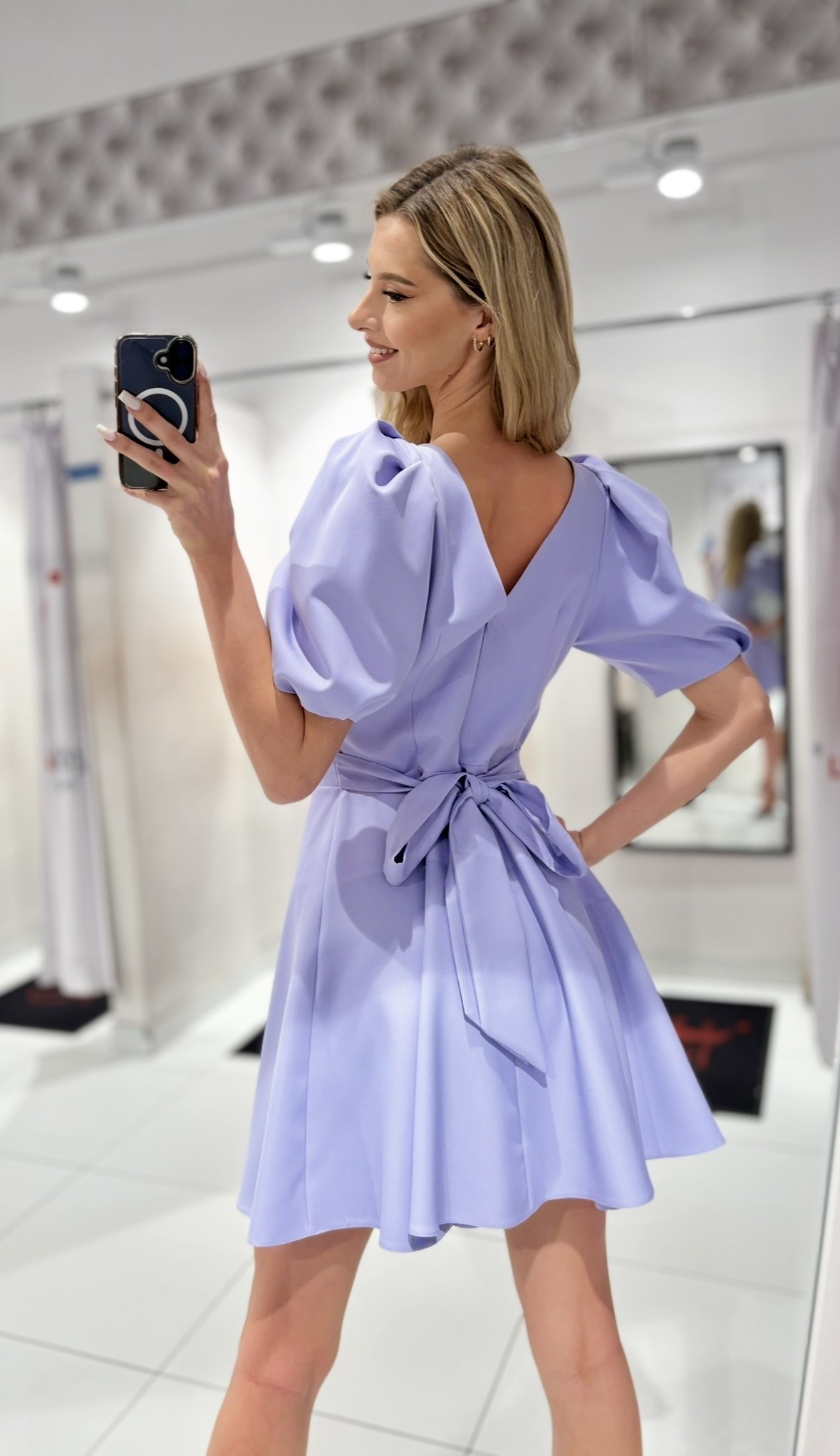 Sukienka krótka 3/4 rękawek wiązanie plecy fiolet