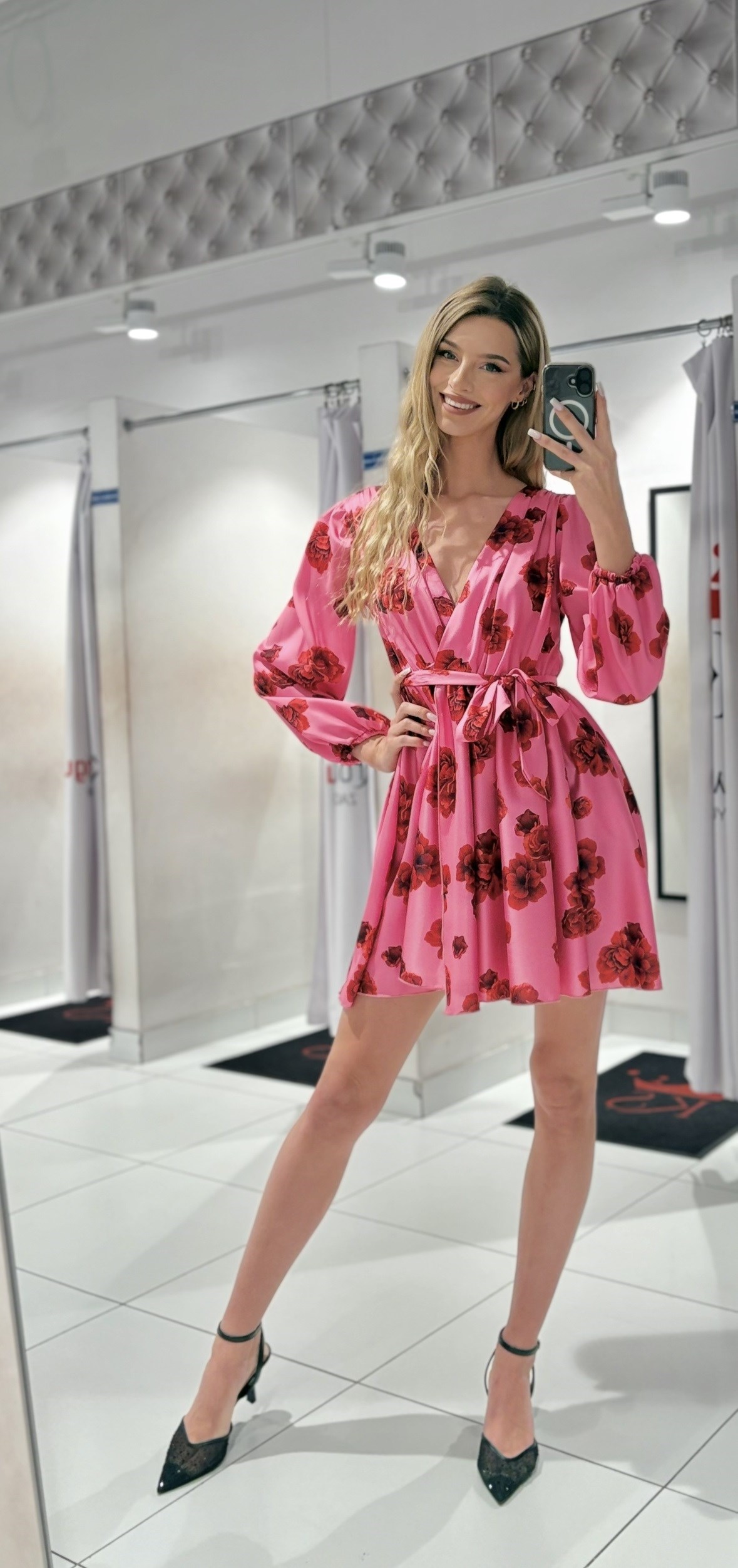 Sukienka krótka koszulowa rękaw kwiaty róże