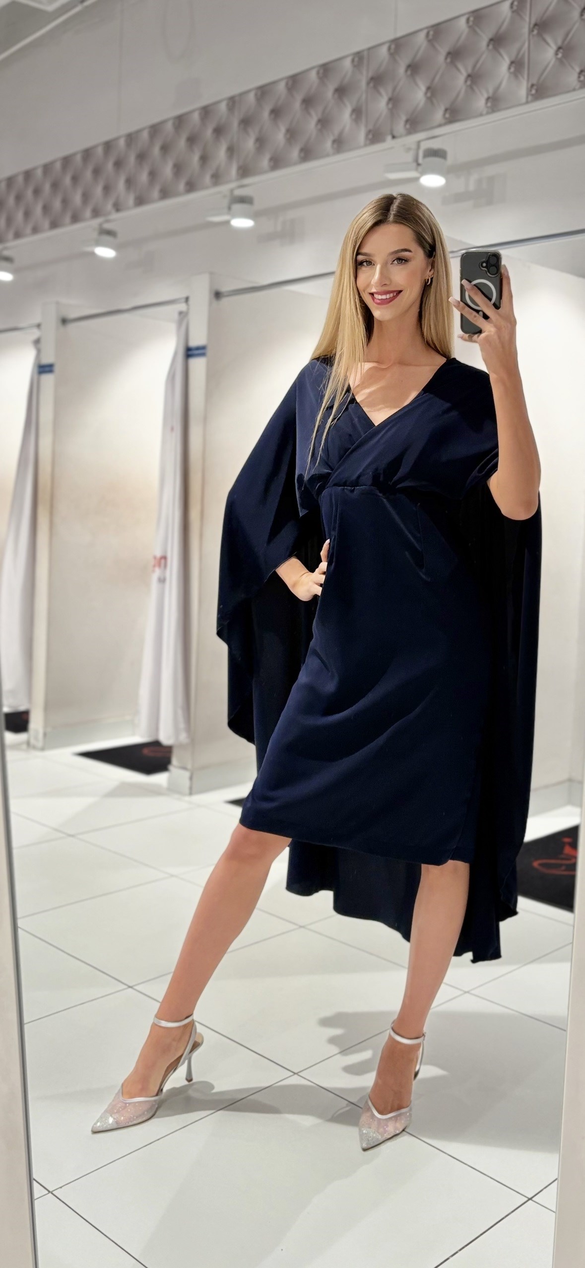 Sukienka krótka prosta z narzutką granat