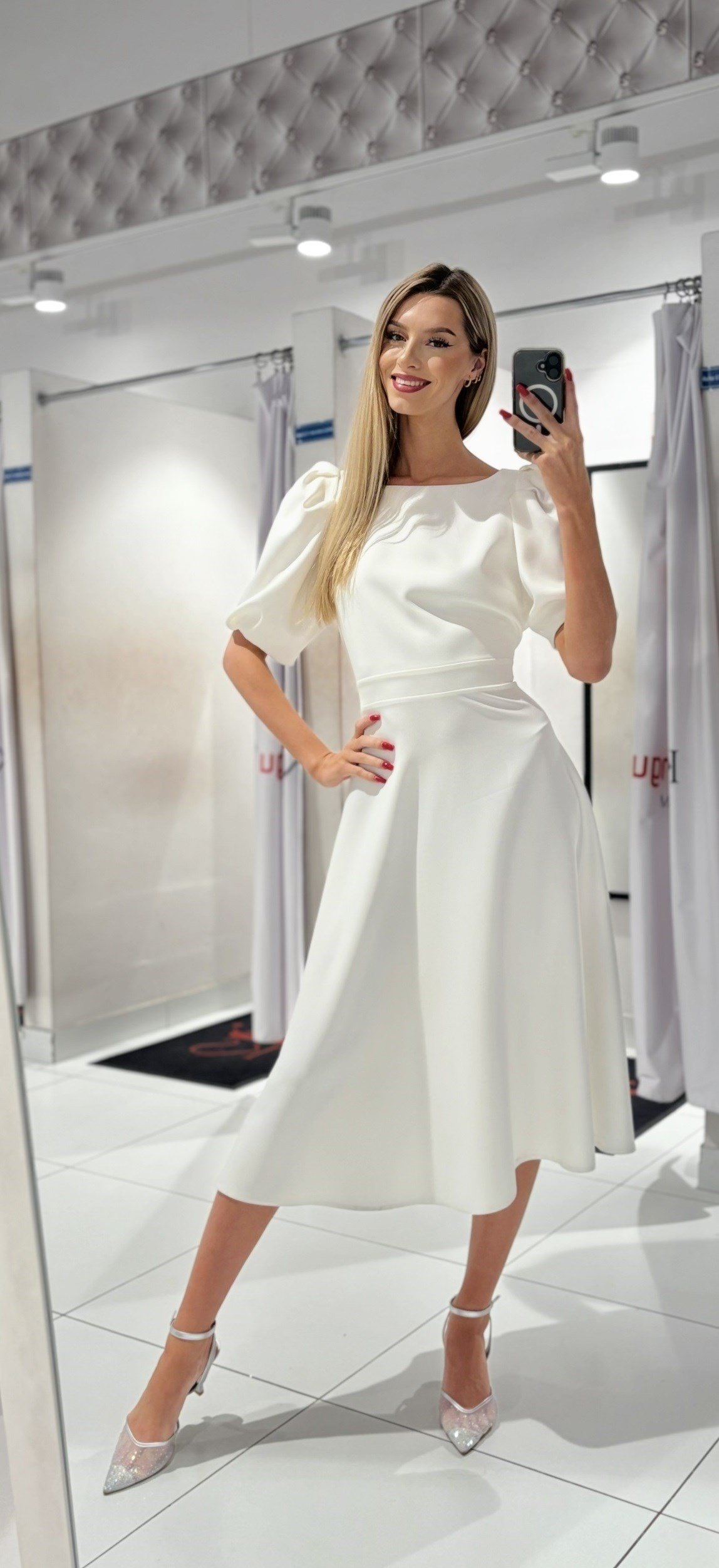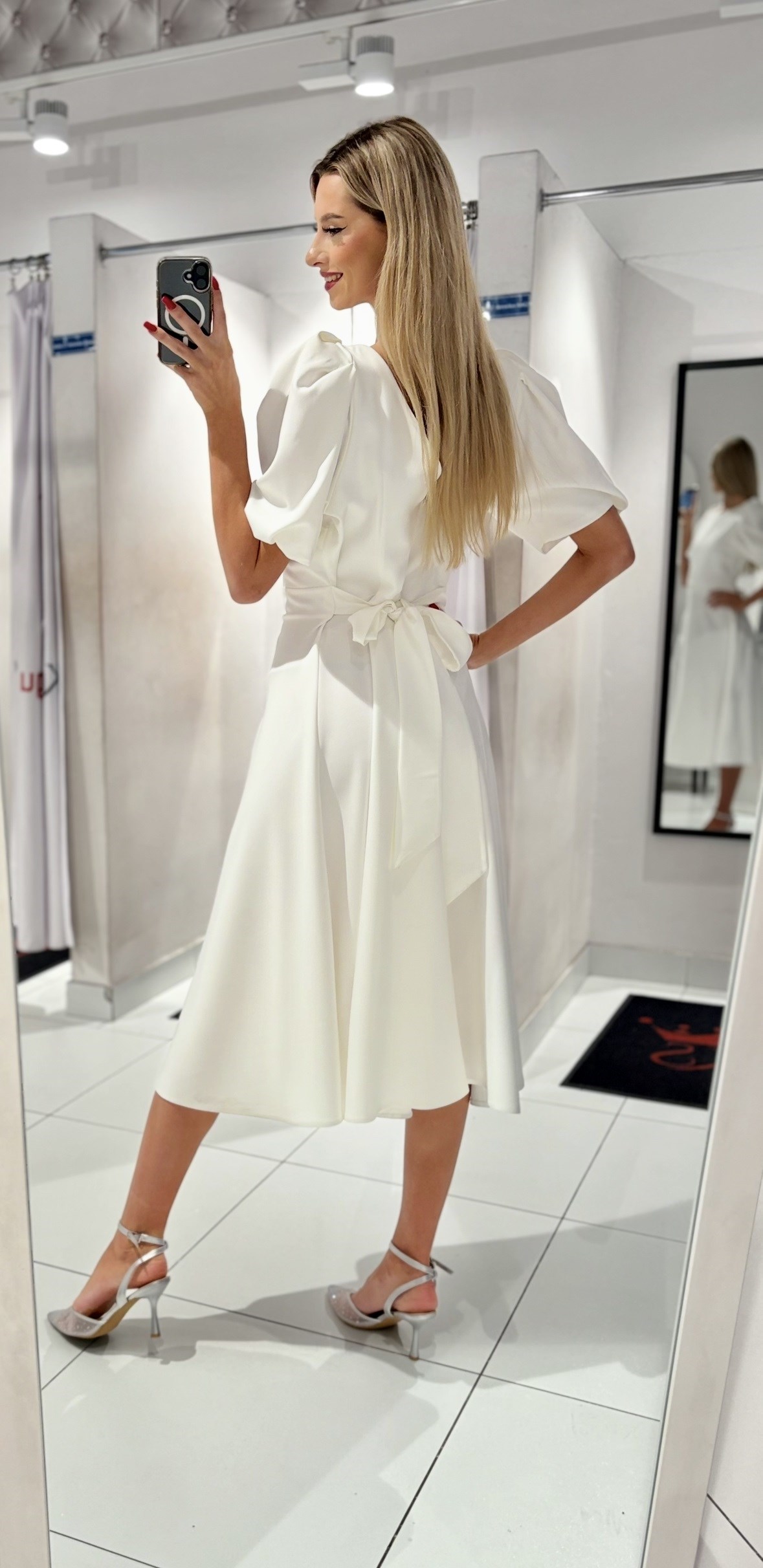 Sukienka midi 3/4 rękawek wiązanie plecy biel