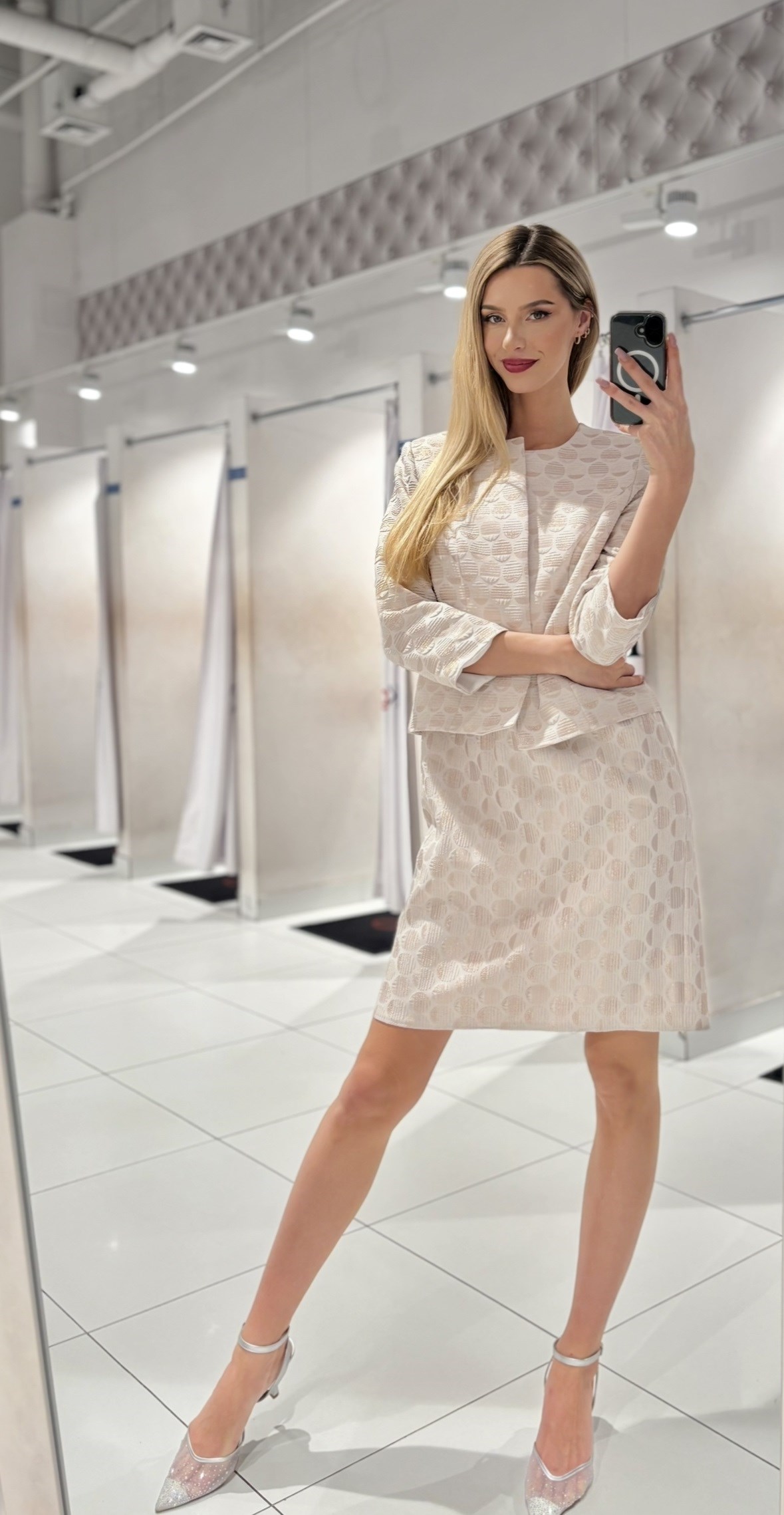 Żakiet brokatowy grochy beż
