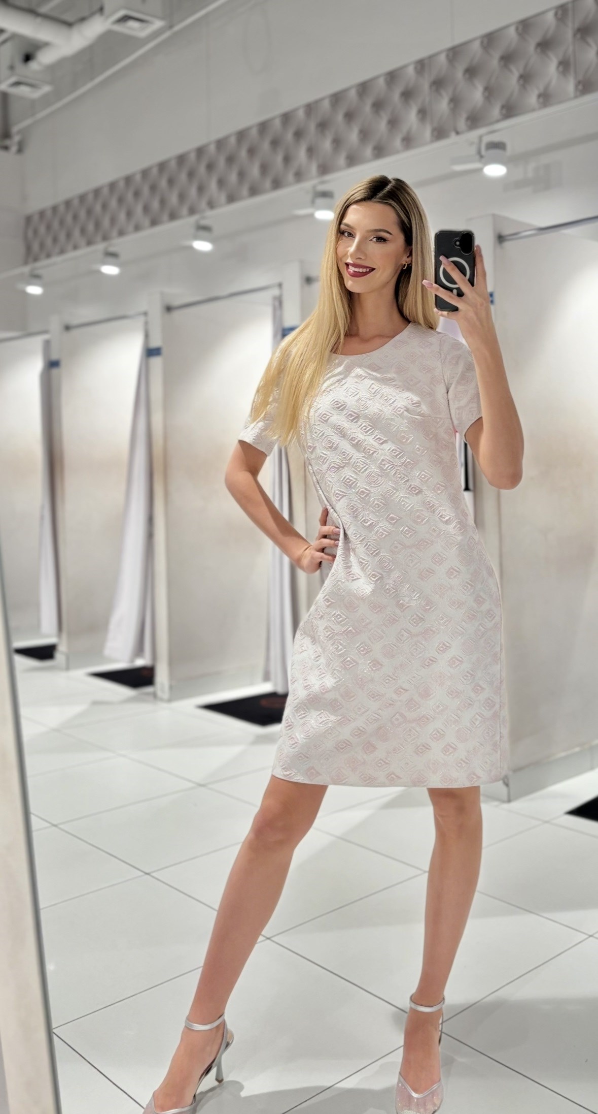 Sukienka krótka rękawek wzór róż/srebro
